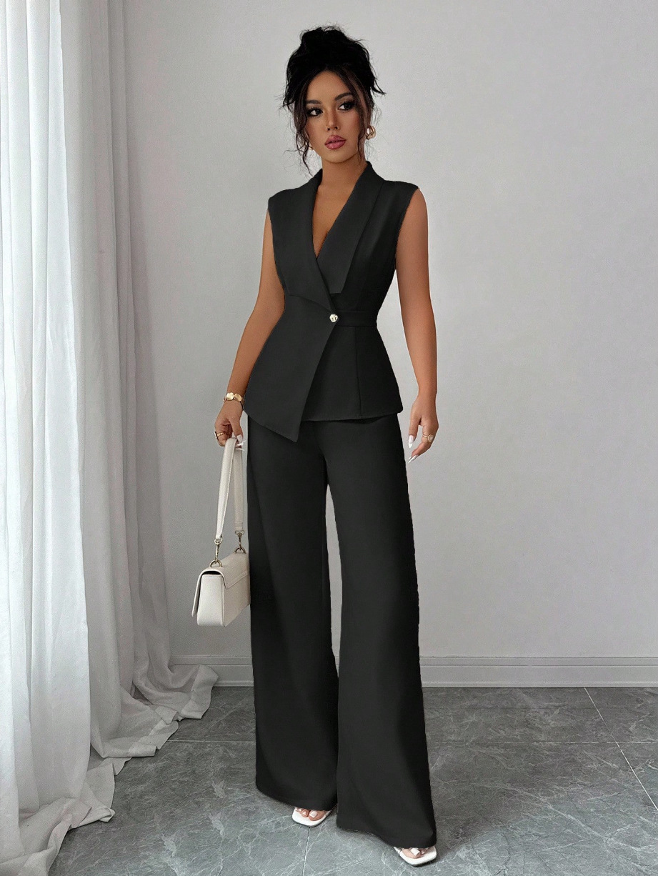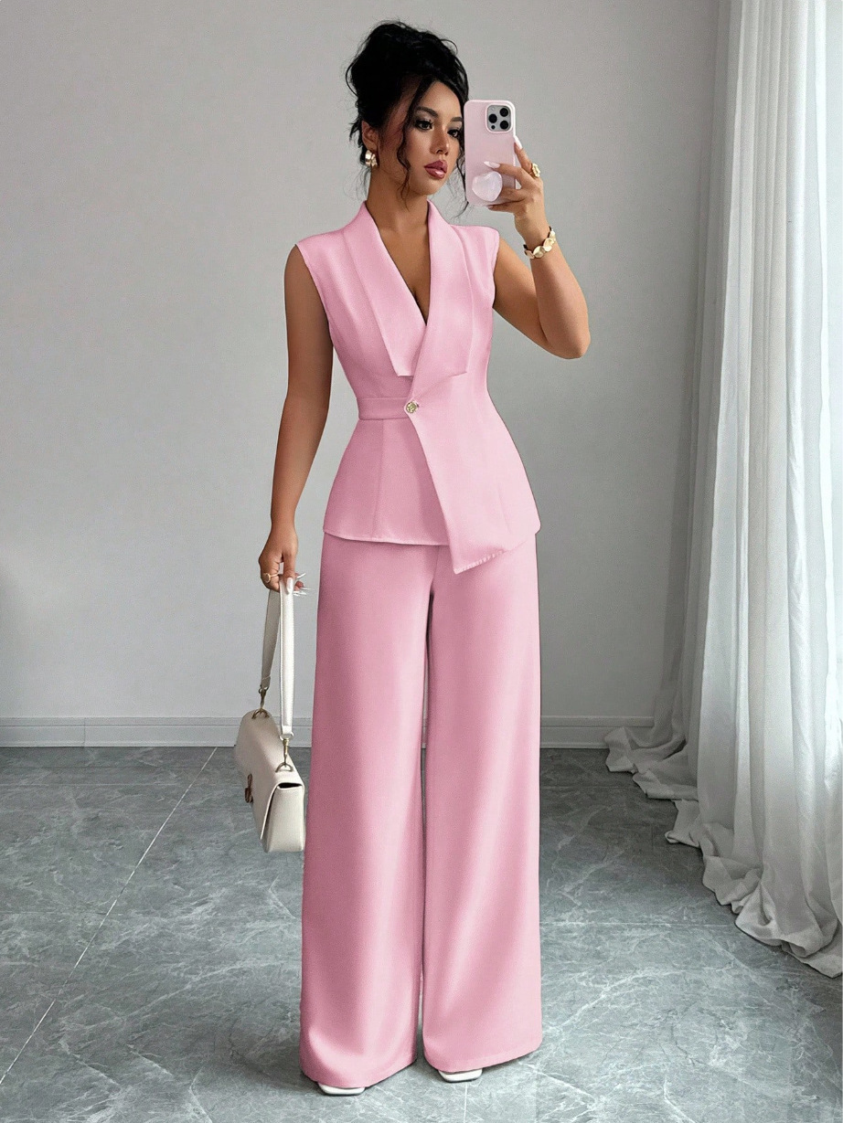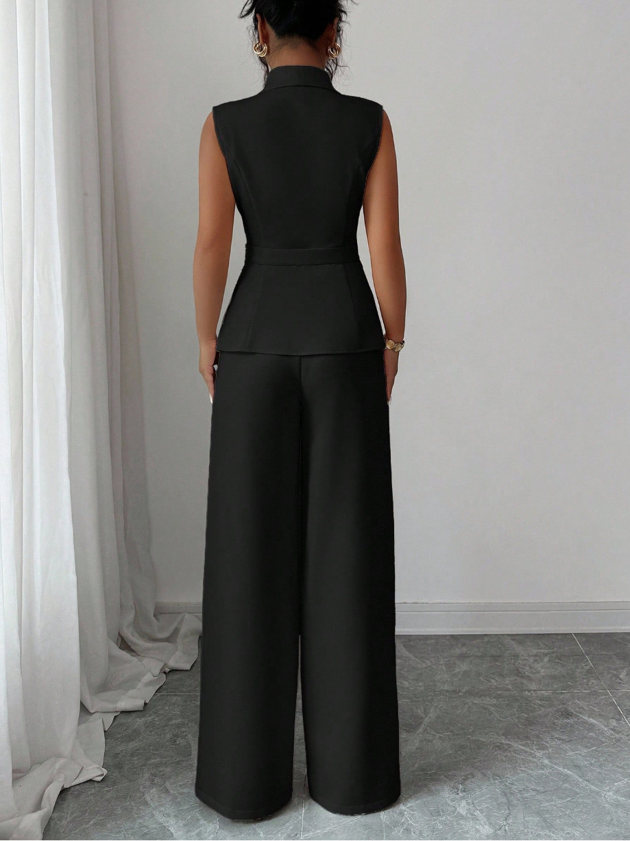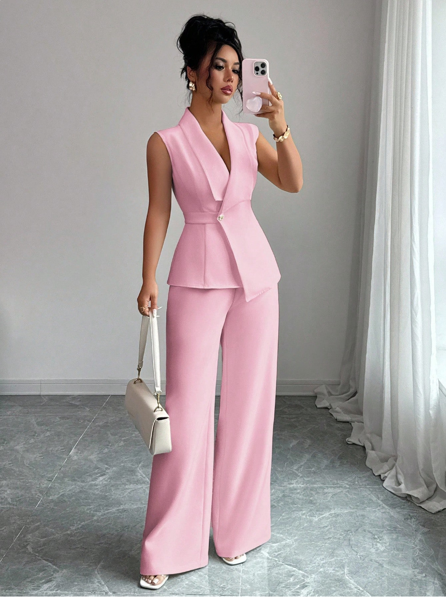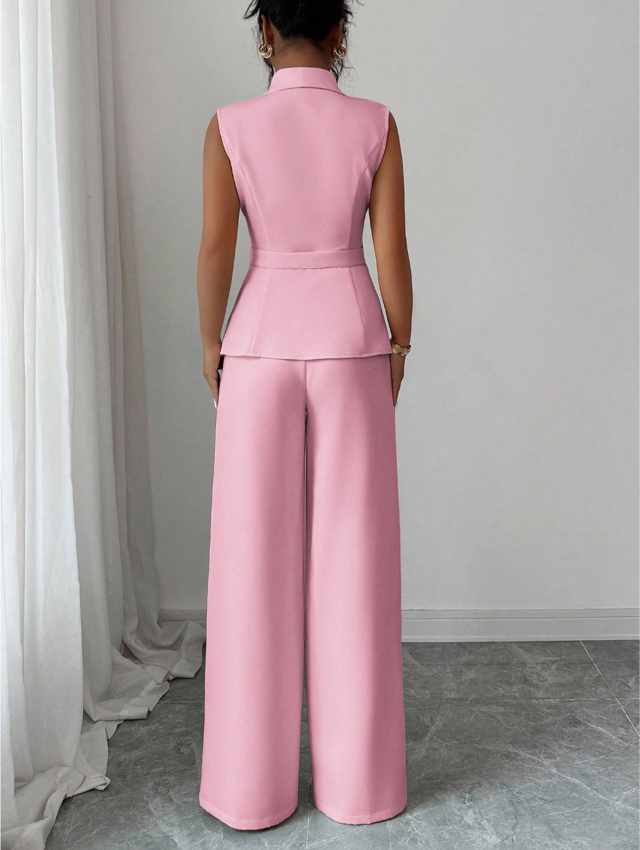 Sleeveless Blazer And Straight-leg Pants Two-piece Set
