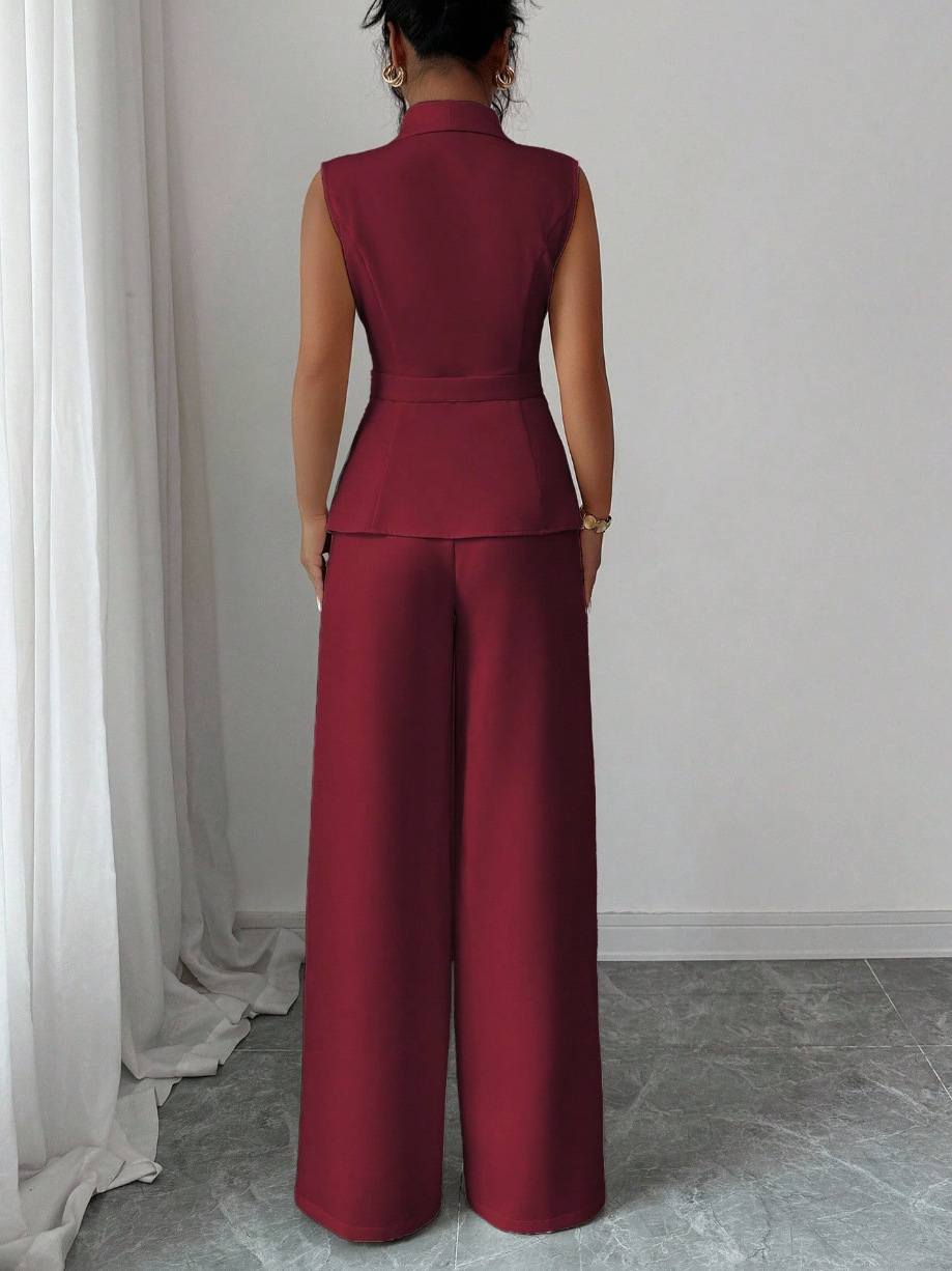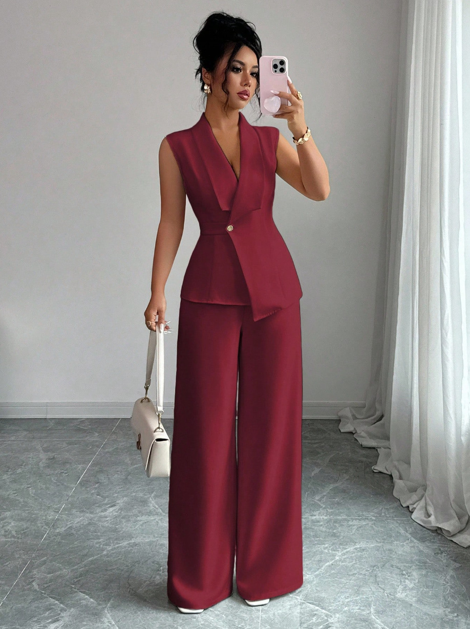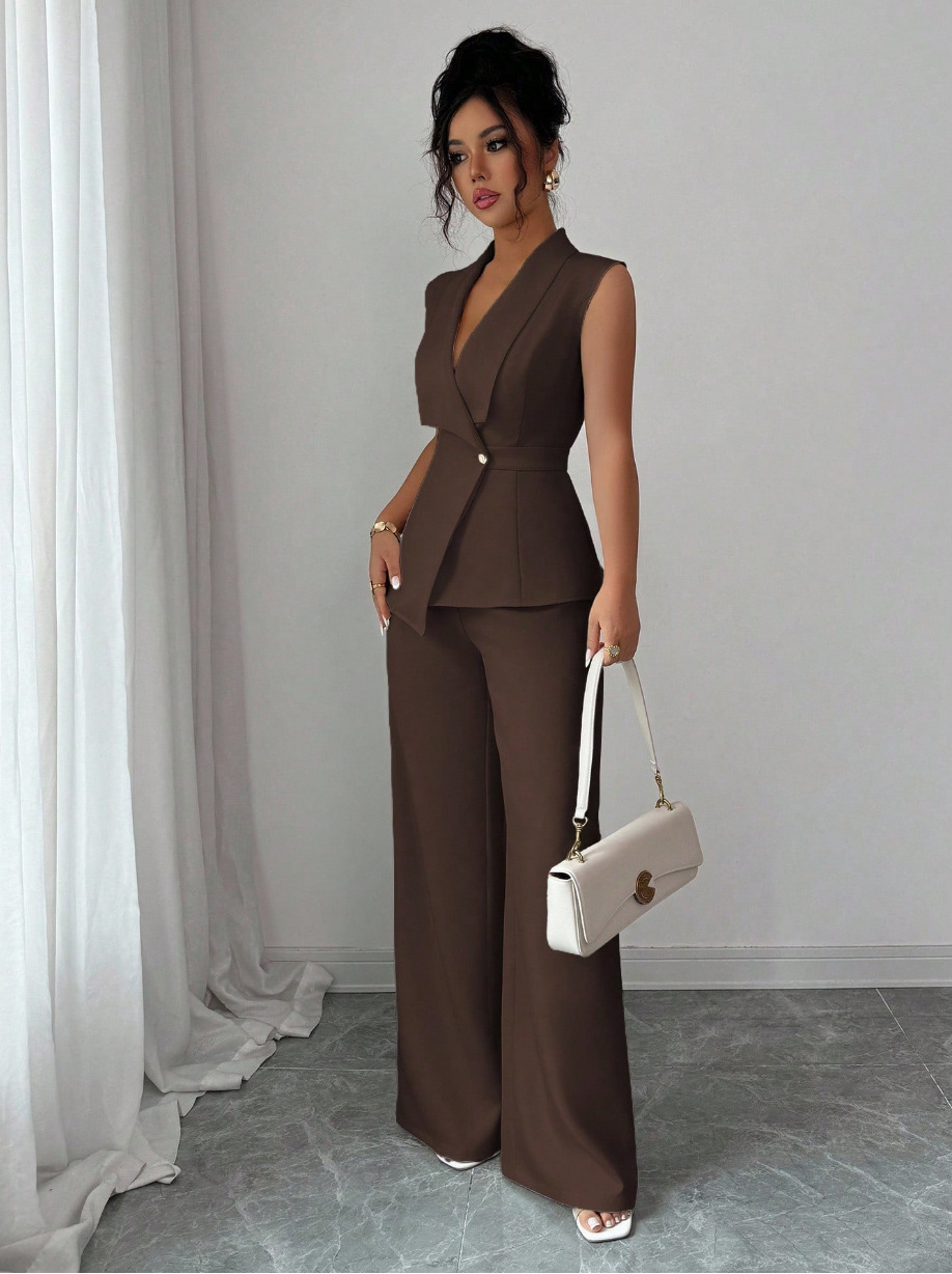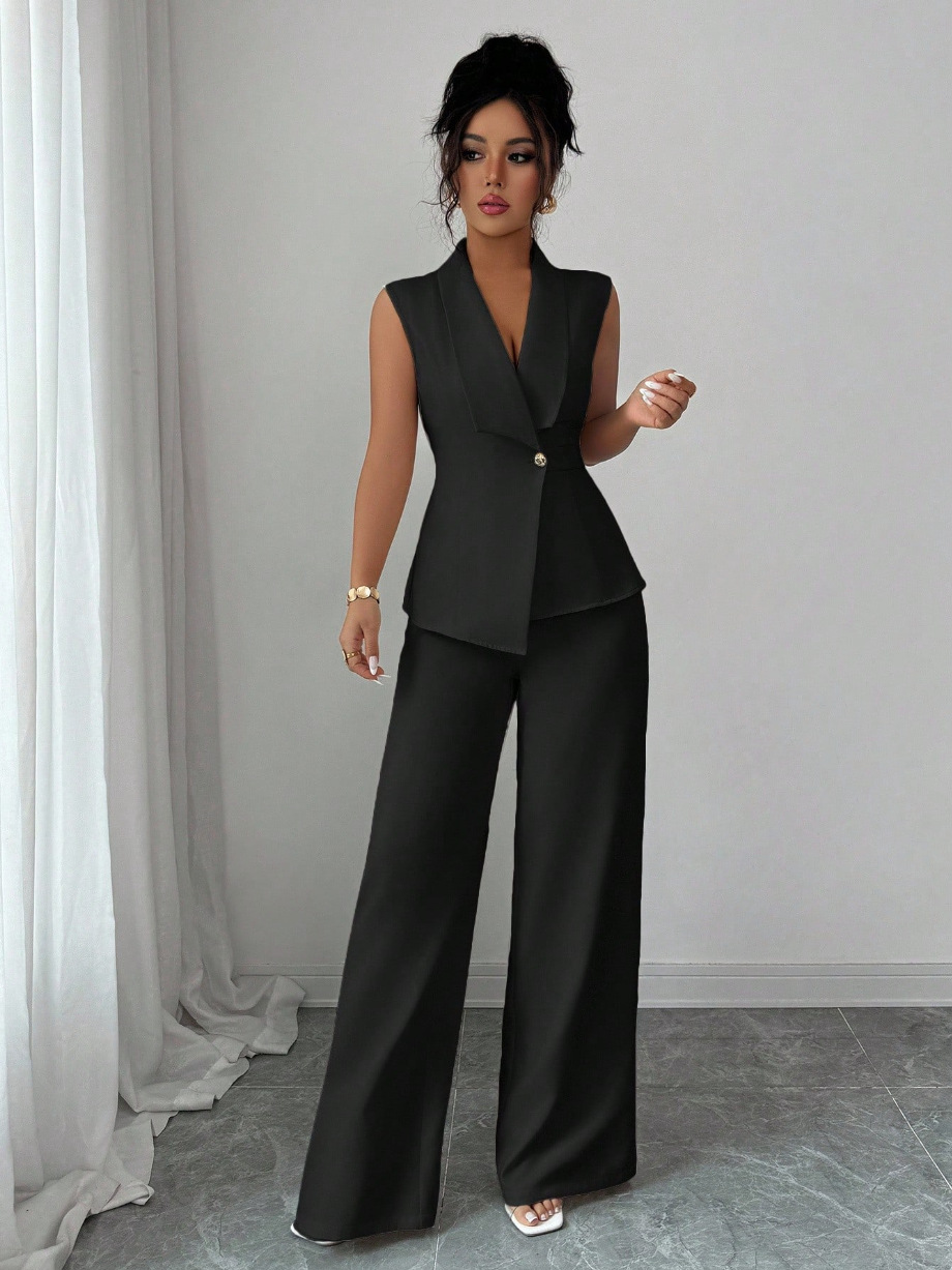 Sleeveless Blazer And Straight-leg Pants Two-piece Set