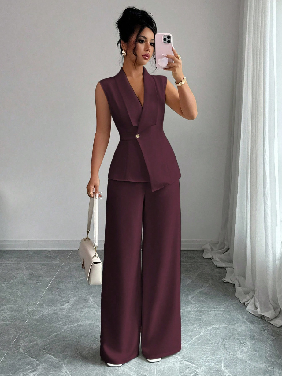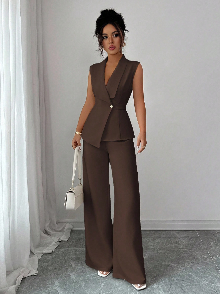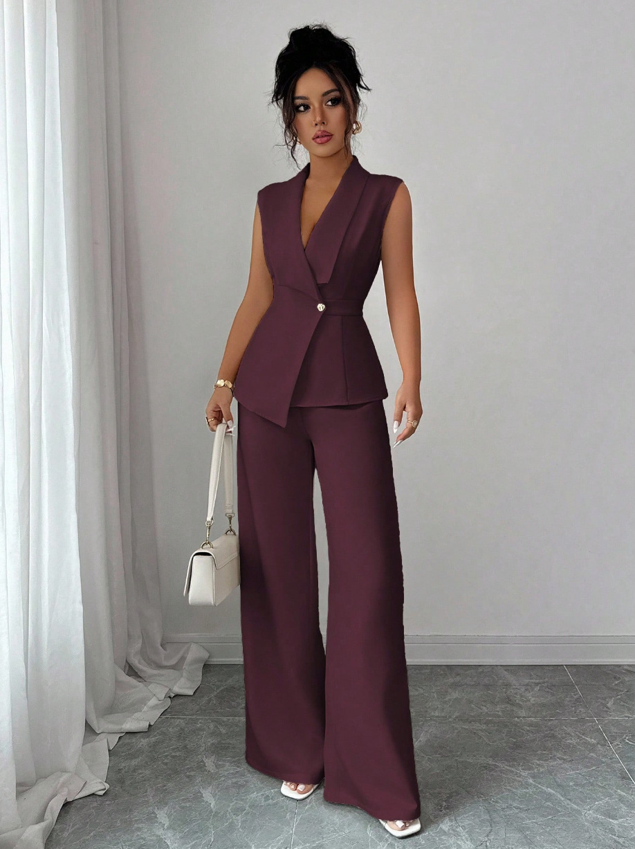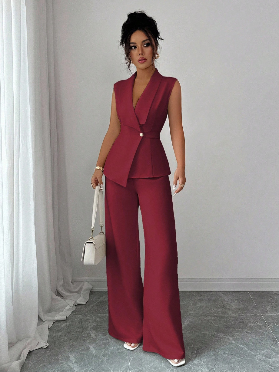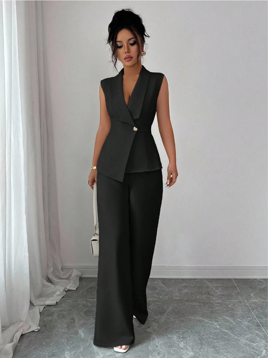 Sleeveless Blazer And Straight-leg Pants Two-piece Set
